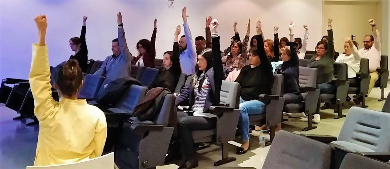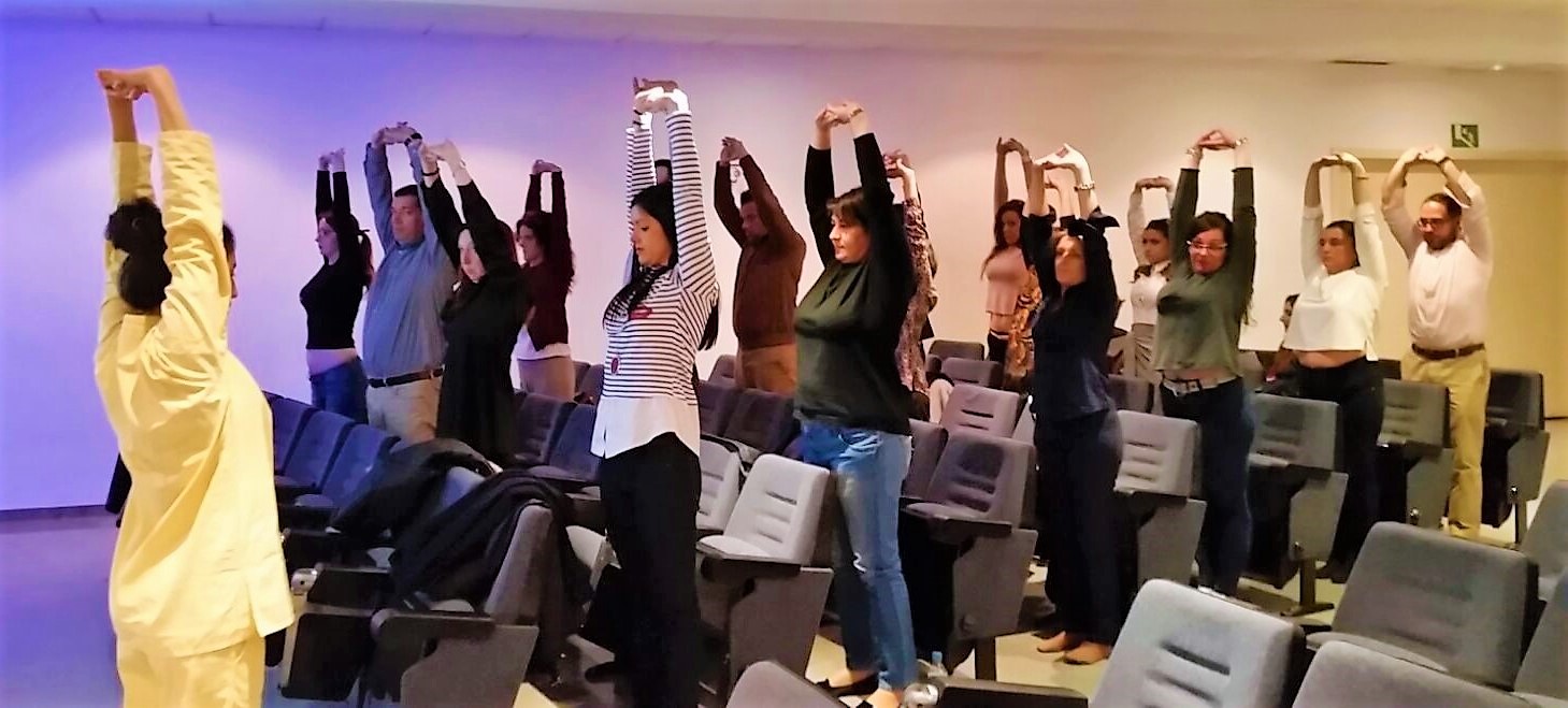 Ellos mismos tuvieron la posibilidad de experimentar, en la segunda parte del taller, algunas técnicas de respiración y de relajación, estiramientos, y asanas con las que trabajamos especialmente, la zona cervical, los hombros y toda la espalda.